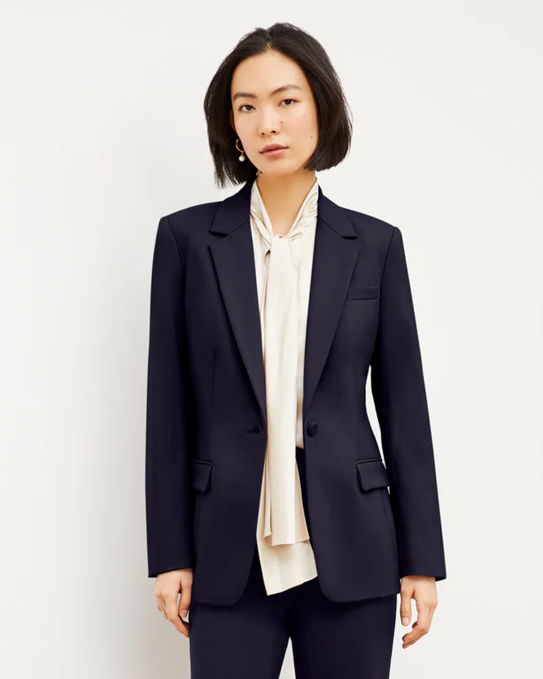 4 non-boring ways to wear a classic navy blazer to the office.